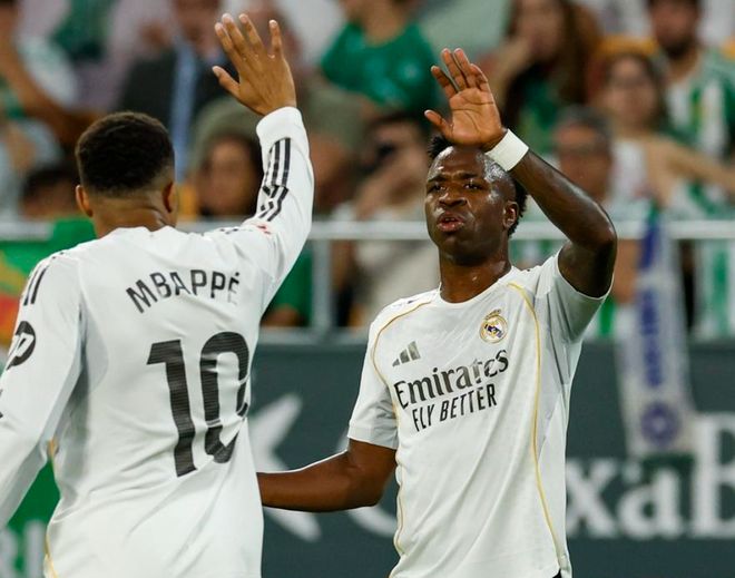足坛这一夜进行了多场比赛,踢出了不少让人意外的疯狂剧情。在西甲赛场,皇马在客场爆冷,被皇家贝蒂斯逼平。这场比赛皇马进入状态比较快。维尼修斯在第17分钟就抓住机会补射破门,帮助皇马取得领先。之后皇家贝蒂斯创造出了多次机会。其中安东尼有两次射门极具威胁,但都被门将卢宁神扑化解。姆巴佩在下半场打进一粒非常漂亮的进球,但却被吹越位。本以为皇马会赢下来,但是没想到最后的补时读秒阶段,皇马丢球了!贝莱林进球完成绝平!最终的比分定格为1-1!皇马在多赛一场的情况下落后巴萨8分,争冠希望极其渺茫。